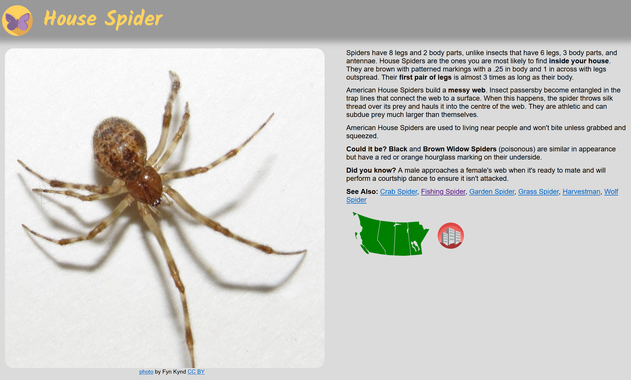 House spiders help keep your home free of insect pests. Their webs are messy but effective as one spider can catch hundreds of tiny flies in a day. Insect passersby become entangled in the trap lines that connect the web to a surface. When this happens, the spider throws silk thread over its prey and hauls it into the centre of the web. House spiders are athletic and can subdue prey much larger than themselves. They’re used to living near people and won’t bite unless grabbed and squeezed.